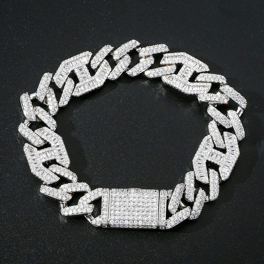 15mm Wide Bar Cuban Link Chain Flip Clasp Bracelet