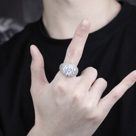 Round Cut & Micro Paved Huge Gem Hip Hop Ring