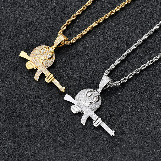 Bling Bling Hip Hop Cartoon Emoji AK Gun Pendant
