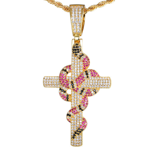Vintage Snake Winding Cross Micro-inlaid Zircon Pendant