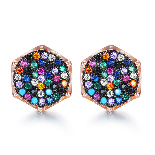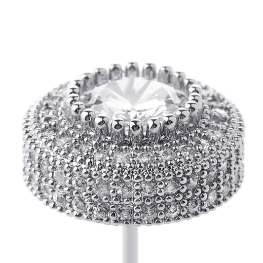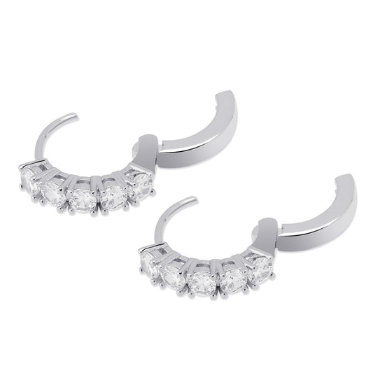 Iced Six Rows Diamond Paved Silver Stud Earrings