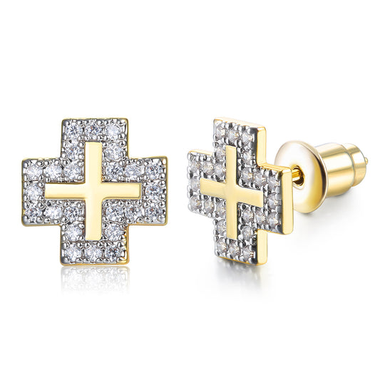 Iced Double Rows Hip Hop Cross Hoop Earrings