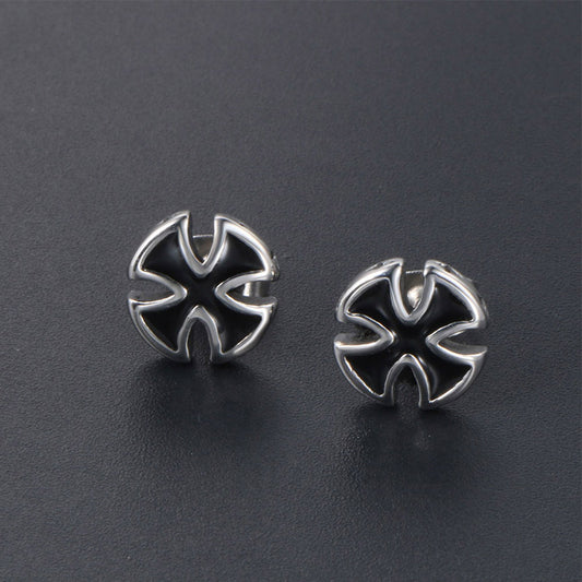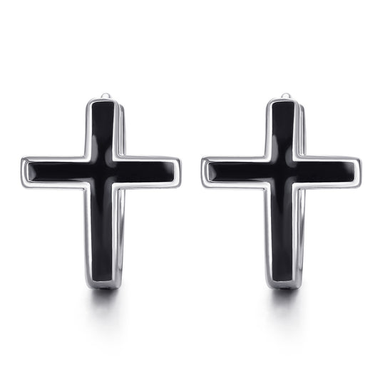 Stainless Steel Cross Dangle Hoop Earrings in Silver
