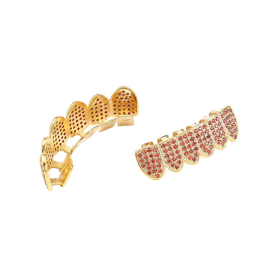 Micro-set Rose Red Zircon Gold Grillz