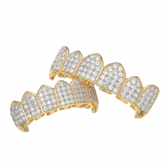 Real Gold Electroplated Copper Micro-inlaid Zircon Fang Grillz