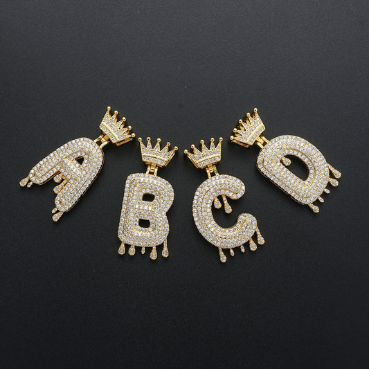 Crown Water Drop English Letter Hip Hop Pendant