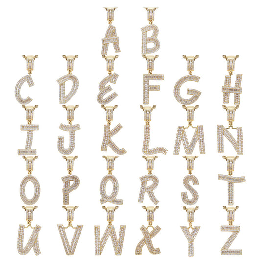 Square Zircon 26 English Letter Hip Hop Pendant