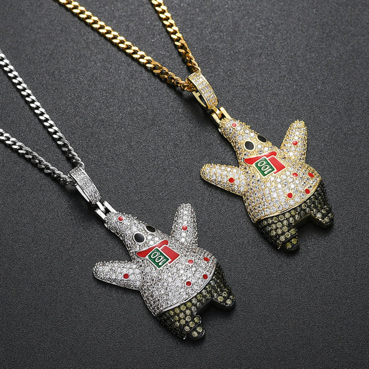 Iced Cartoon Character Patrick Star Full of Zircon Pendant