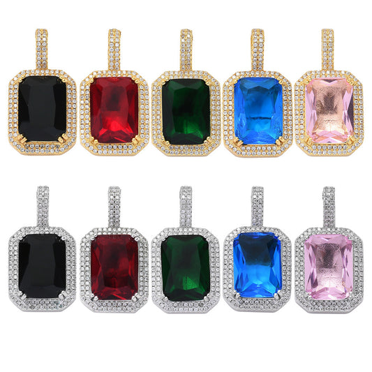 Hip Hop Popular Logo Solid Square Color Zirconium Pendant