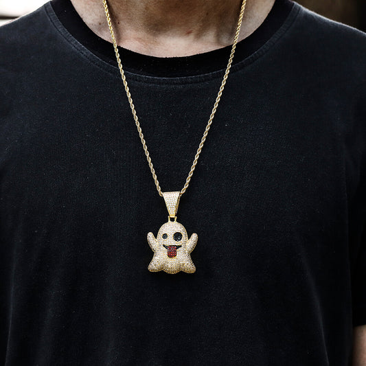 Hip Hop Ghost Tongue out Funny Emoji Pendant