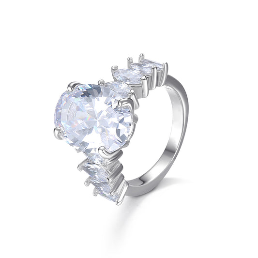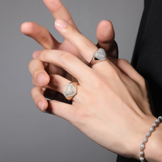 Hip-hop Style Micro-inlaid Zircon Heart-shaped Brass Ring