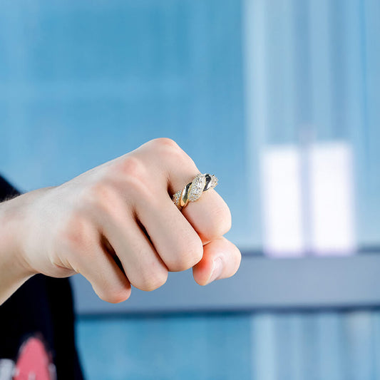 Hip Hop Micro Inlaid Twisted Zircon Ring