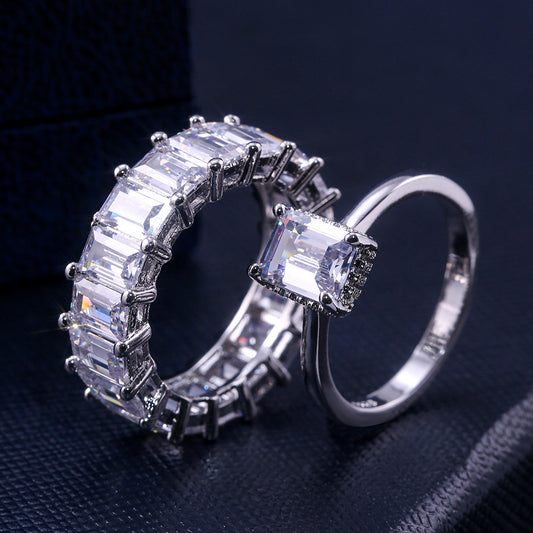 Copper Inlaid Zircon Heart-shaped Couple Ring