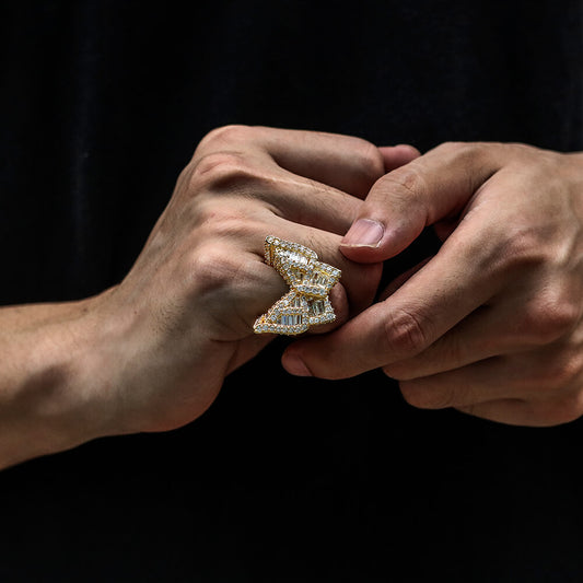 Iced Lightning Bolt Hip Hop Full Gem Ring