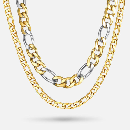 Multi-Size Stainless Steel Figaro Chain in Gold