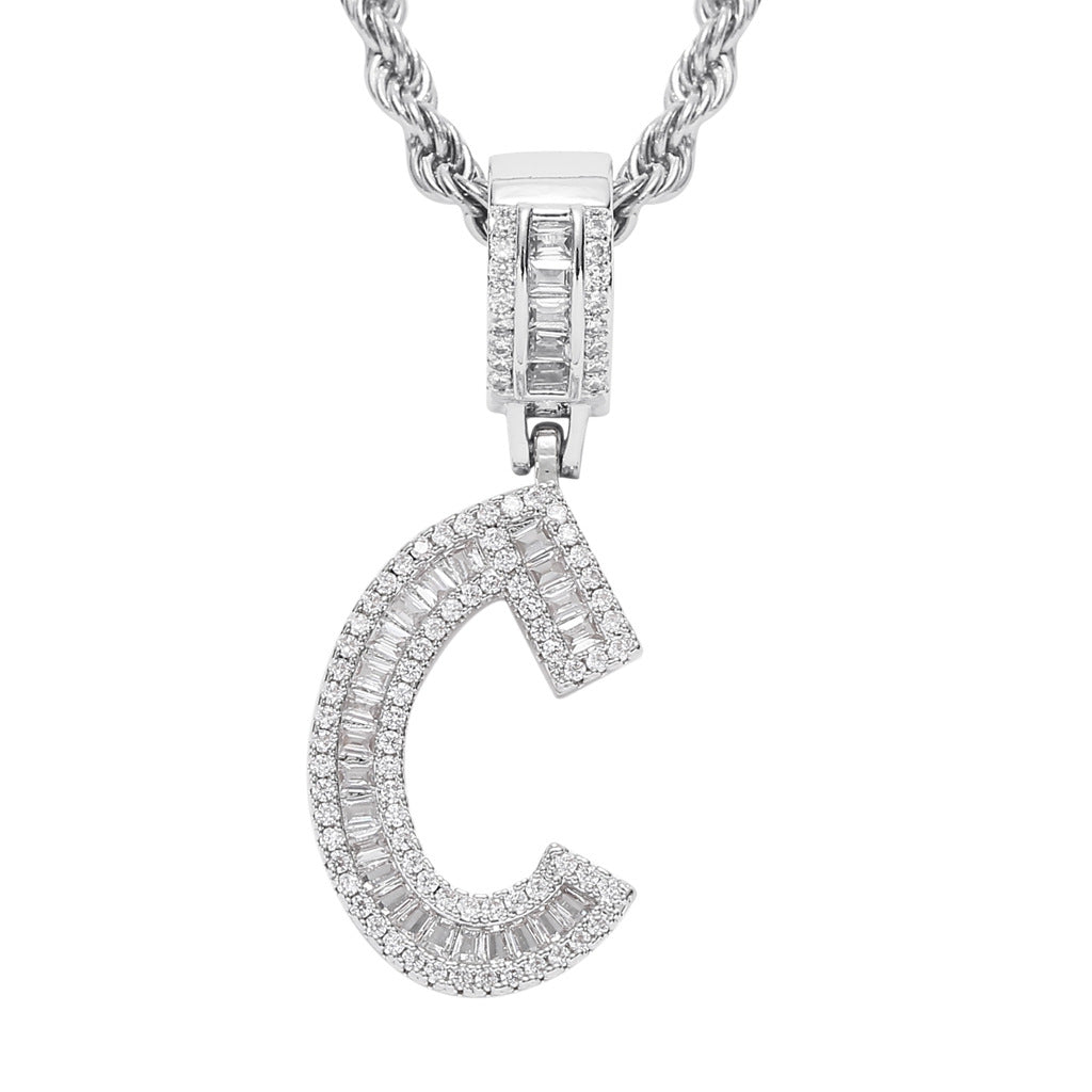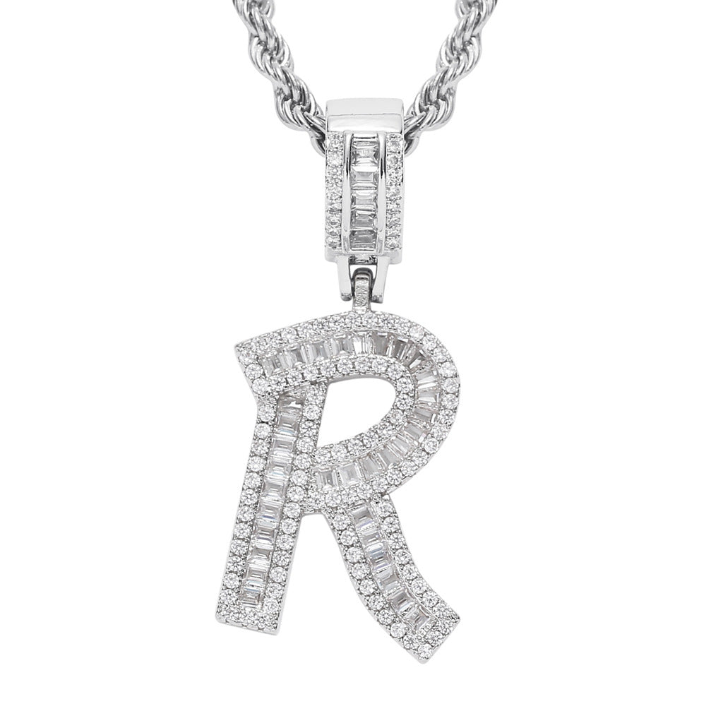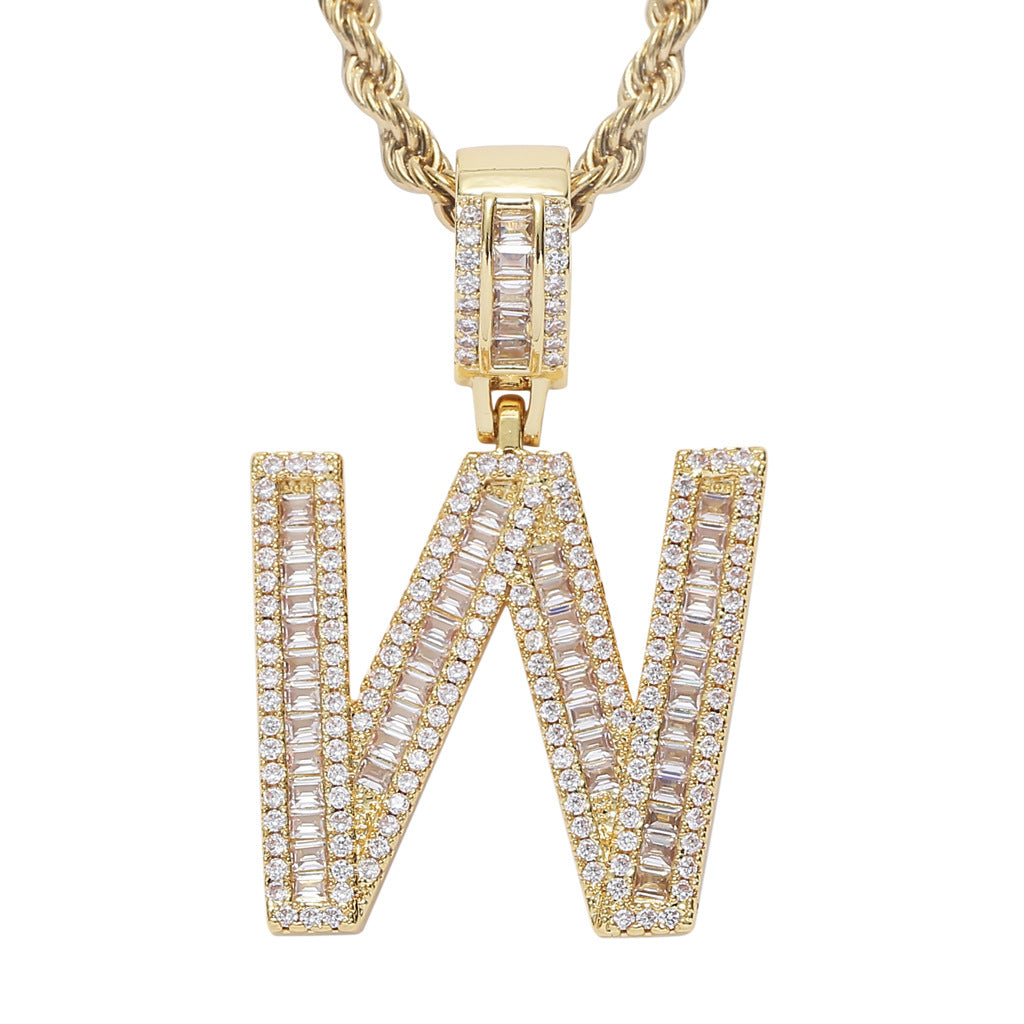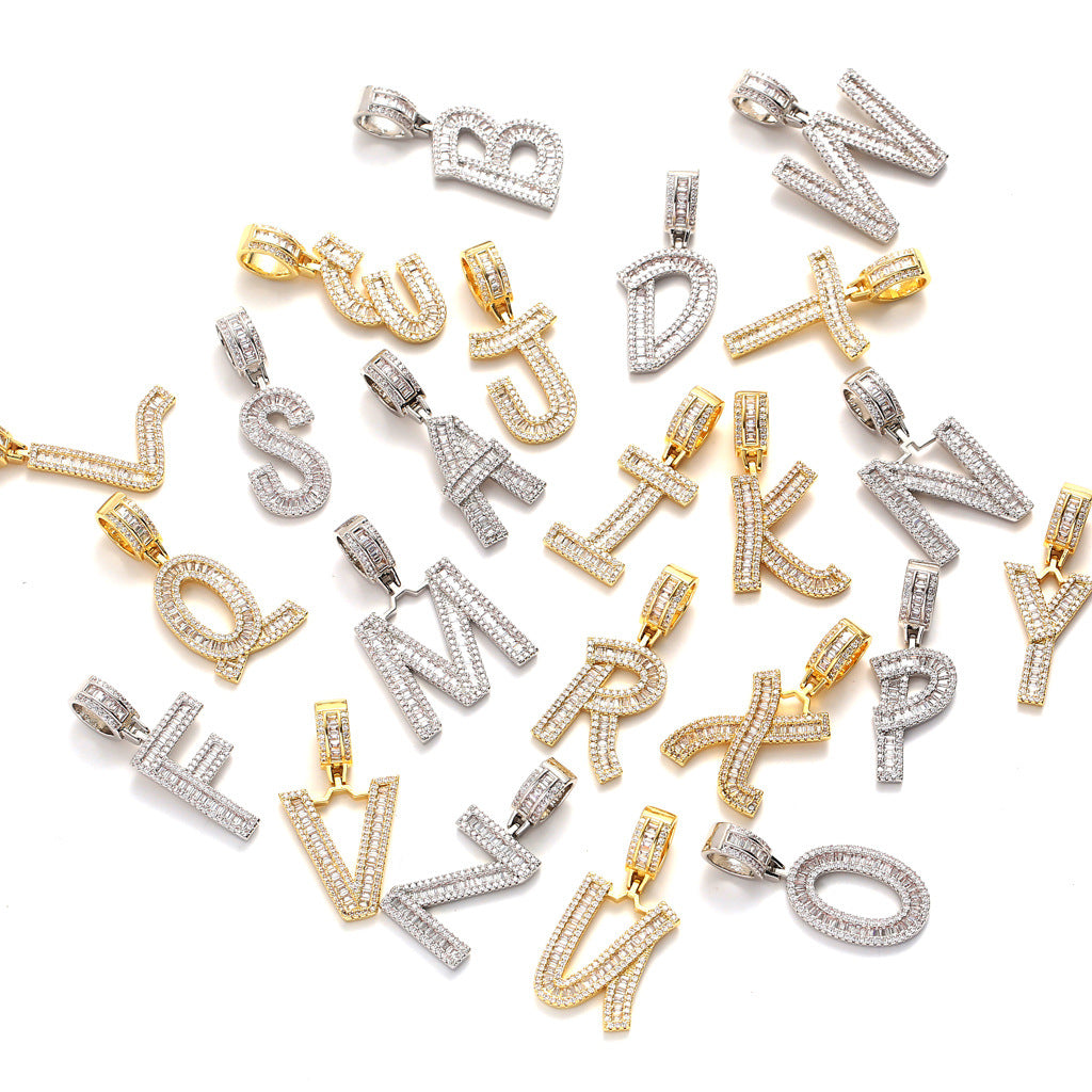 Square Zircon 26 English Letter Hip Hop Pendant